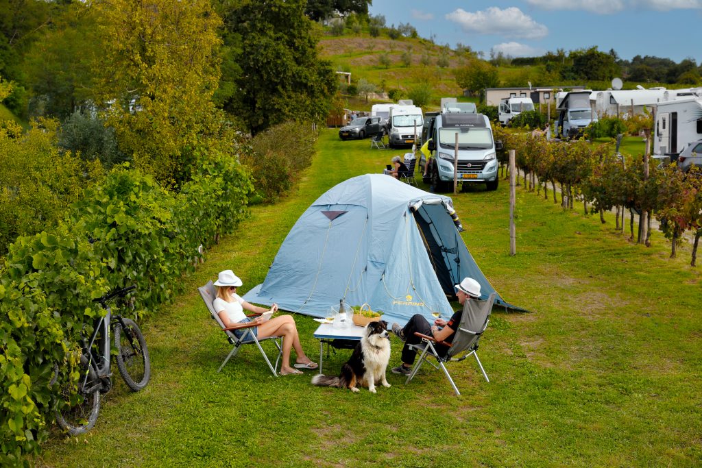 In a clearing surrounded by nature and vineyards stands a campsite that offers spots for camper vans and tents. All the plots are equipped with an electrical power supply.